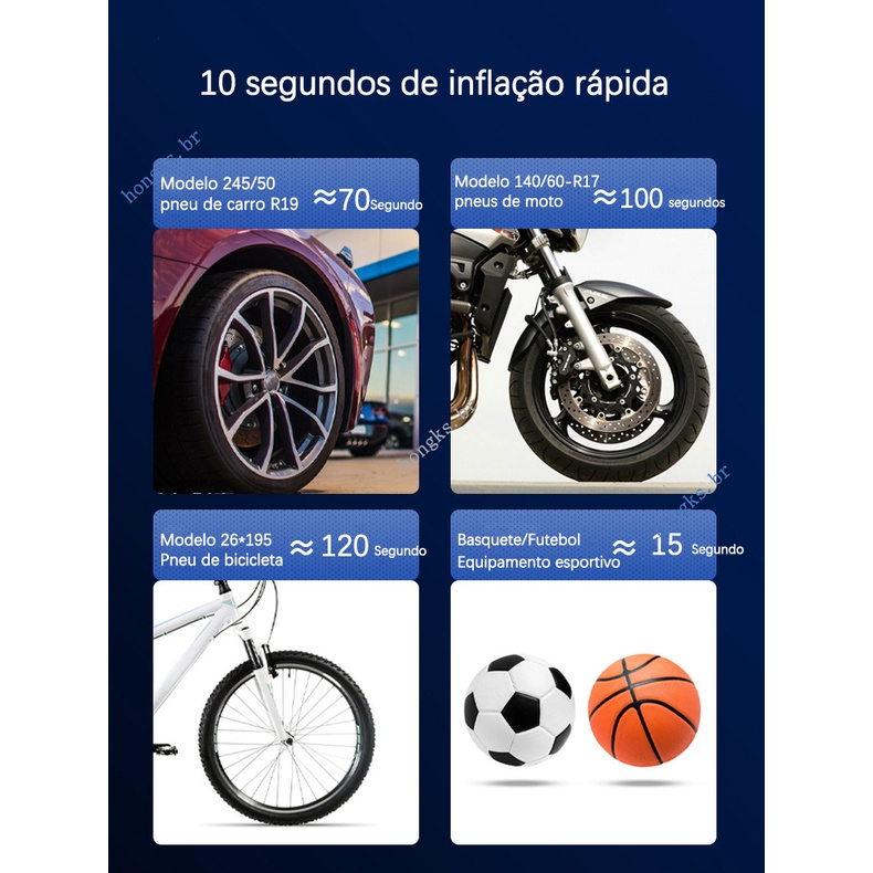 Inflação ultrarrápida, equipamento inflável profissional para inflar seus pneus de forma rápida e sem espera.